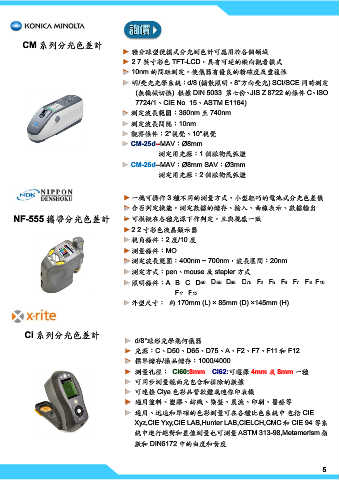 ► 通用、迅速和準確的色彩測量可在各種比色系統中.包括 CIE